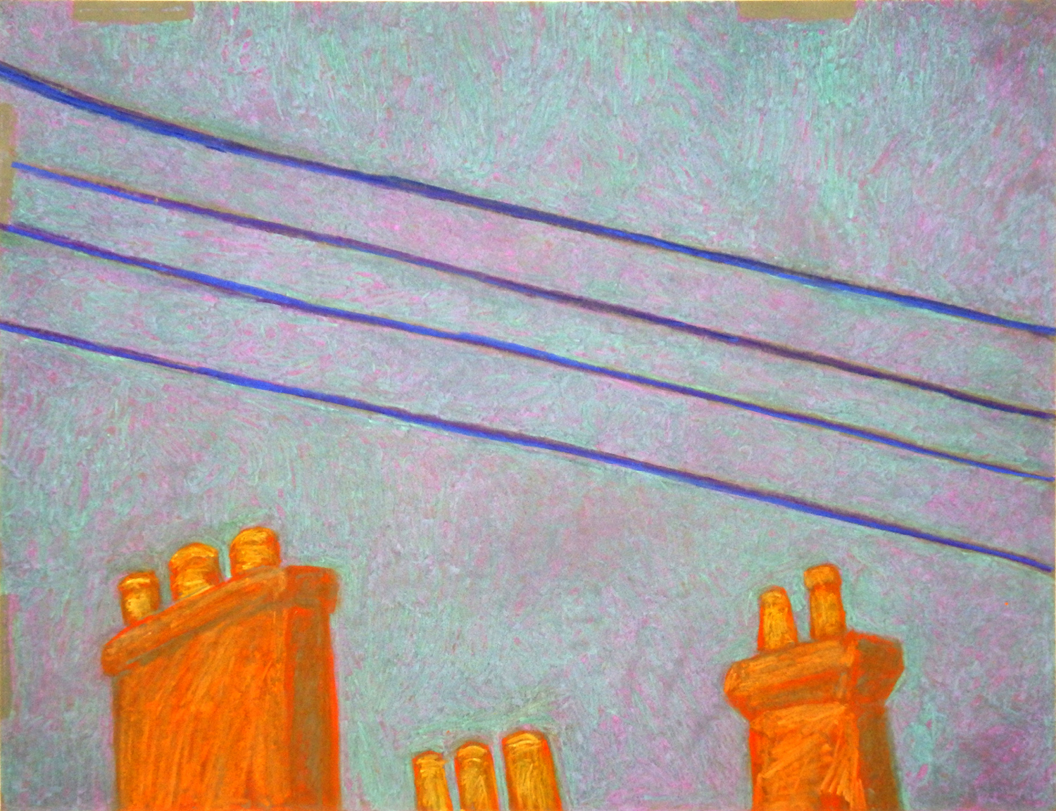 - Chimneys, 2018, chalk pastel on card, 30.5 cm x 50.5 cm/li>