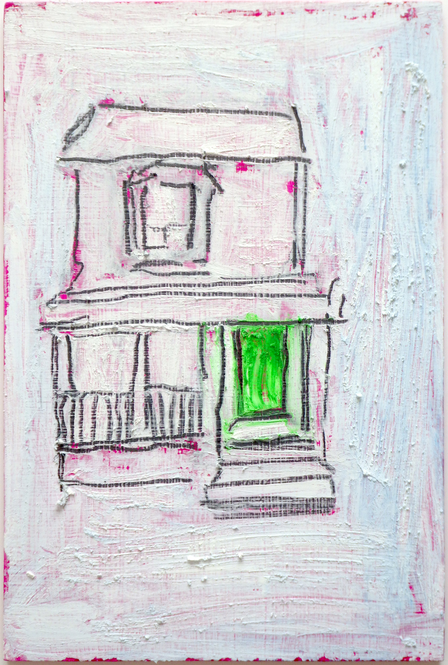 - The House with the Green Door, 2019, oilstick & graphite on wood, 23 cm x 15.5 cm