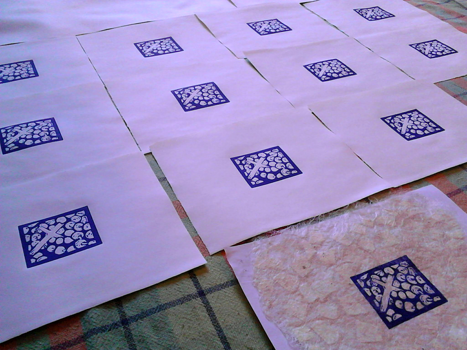- Distance, 2020, lino print, edition & unique silk fibre sheet prints drying