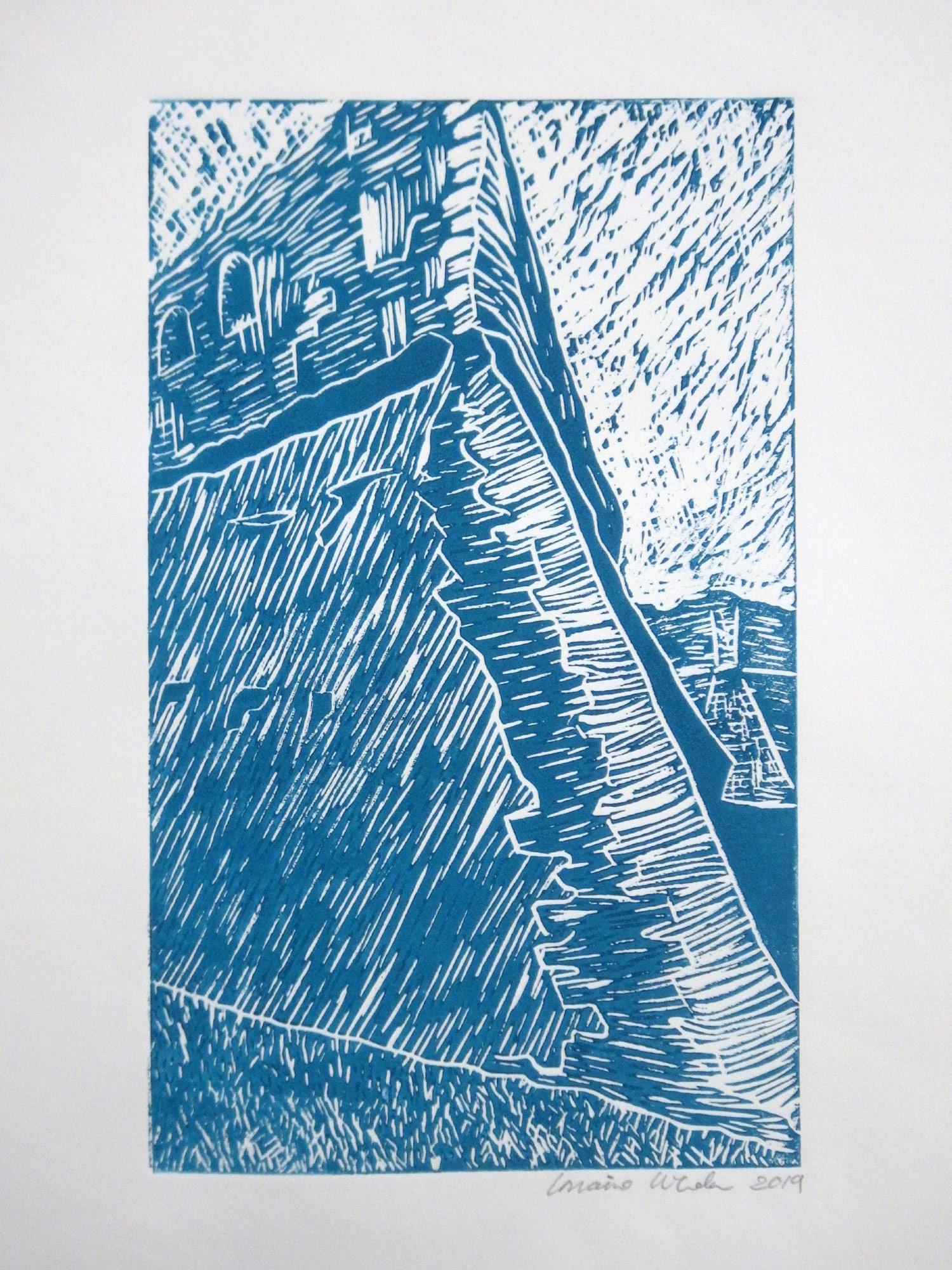 - page 4, A Short Walk to Fort Carré, 2019, edition of 3, linoprint, acid free Fabriano Tiepolo 130g/m2 36.5 cm x 27 cm, image size: 25 cm x 15 cm