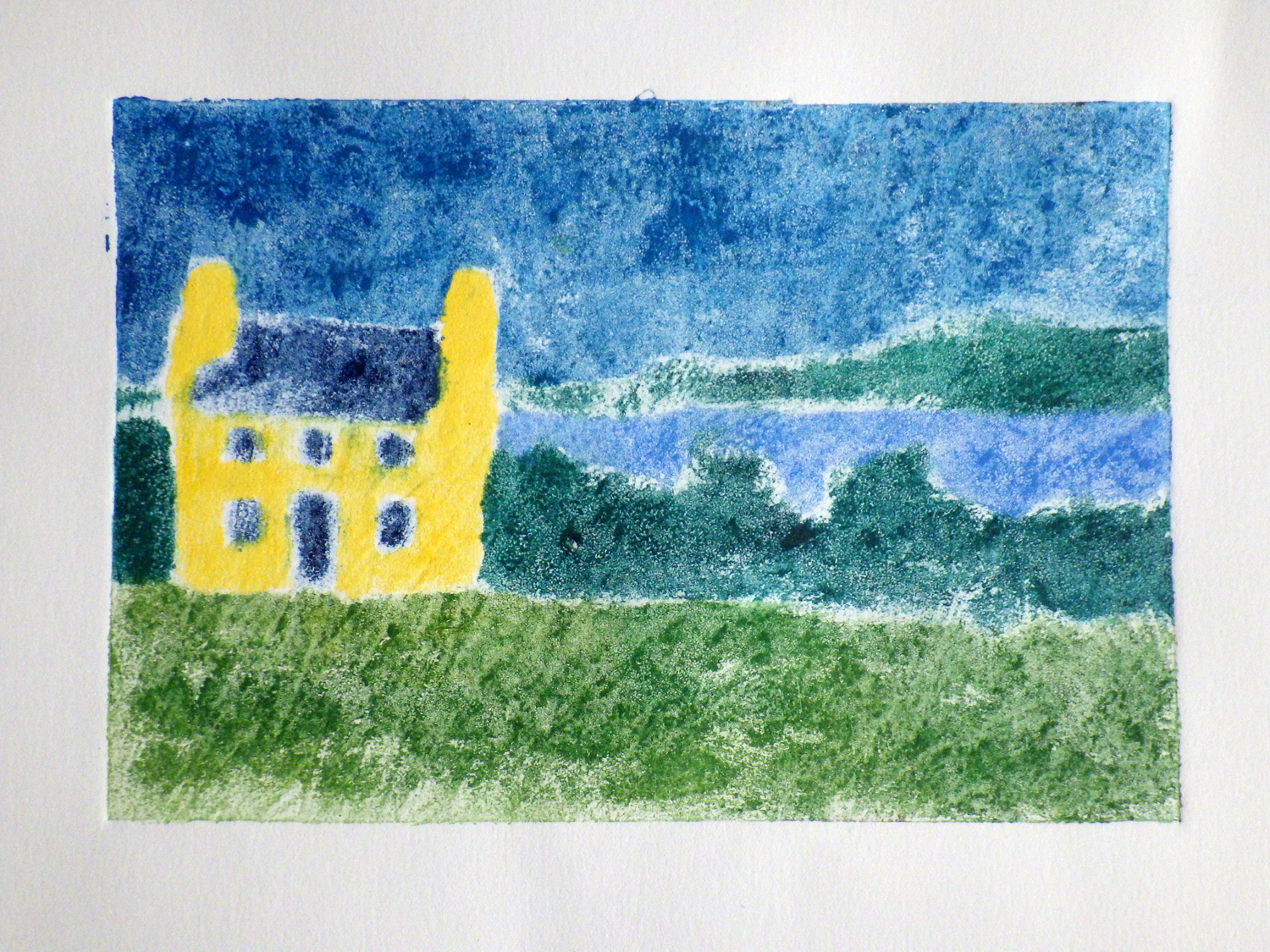 - Field Gate, Knockeen, 2020, linoprint on handmade silk fibre sheet, image size: 6.2 cm x 7.5 cm, sheet size: approx 20 cm x 26 cm