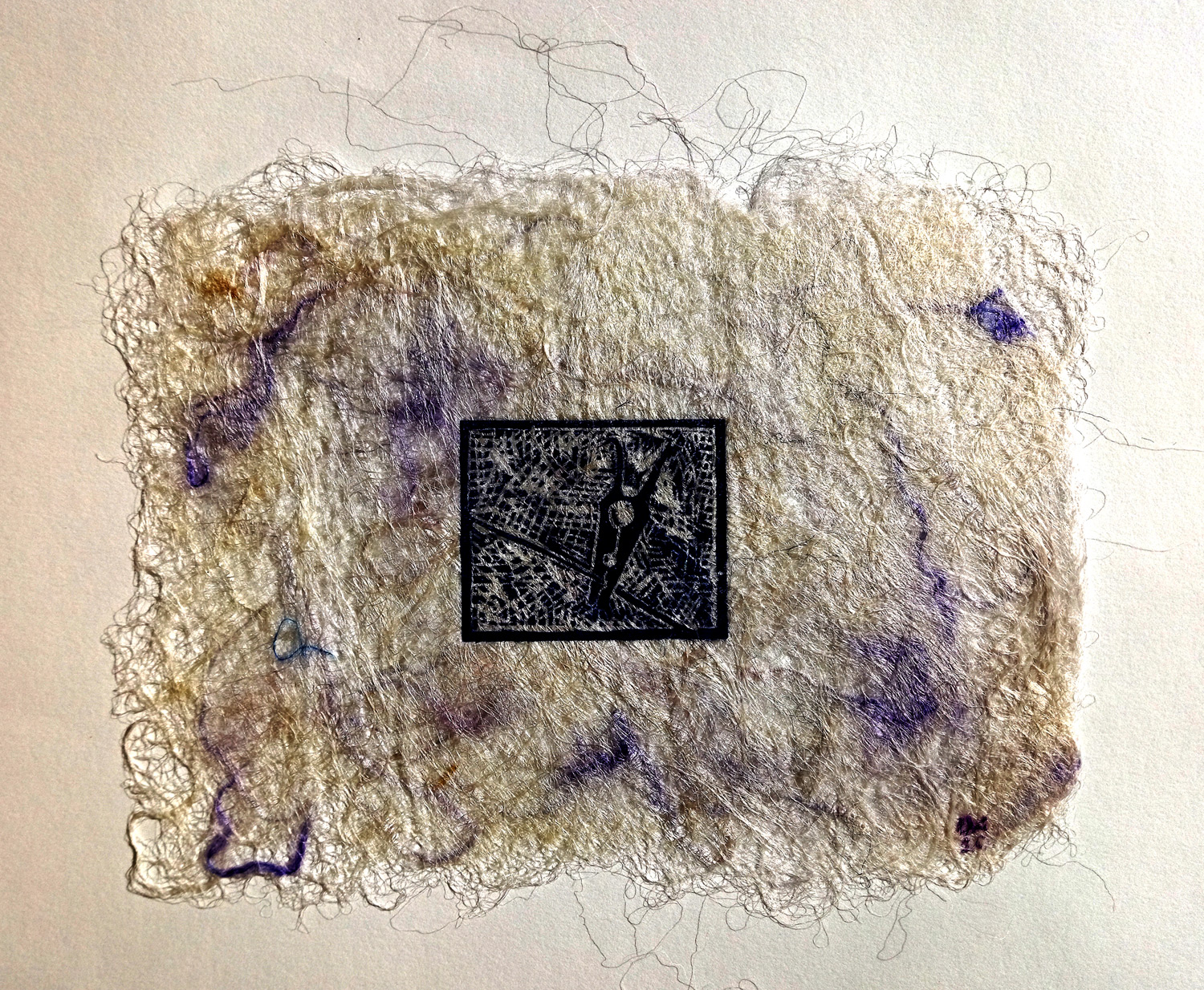 - Clothes Peg, 2020, linoprint on handmade silk fibre sheet, image size: 6.2 cm x 7.5 cm, sheet size: approx 21 cm x 27 cm