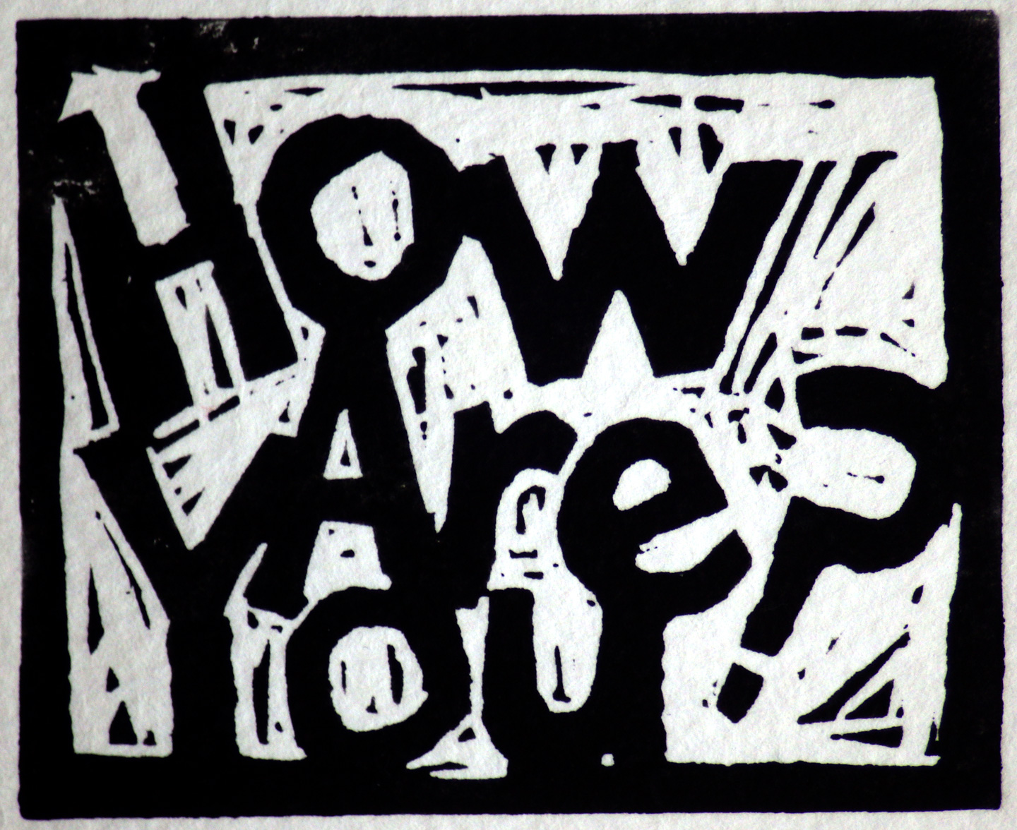These books are bound using Japanese stab-binding. The first and last pages contain a lino-print of text in one of three languages and there are 3 "breakfast" images per book. The simple ritual of a polite greeting and query takes on an existential significance. One of the Irish language books was purchased for the NIVAL (National Irish Visual Arts Library) collection from the Dublin Art Book Fair in 2016.