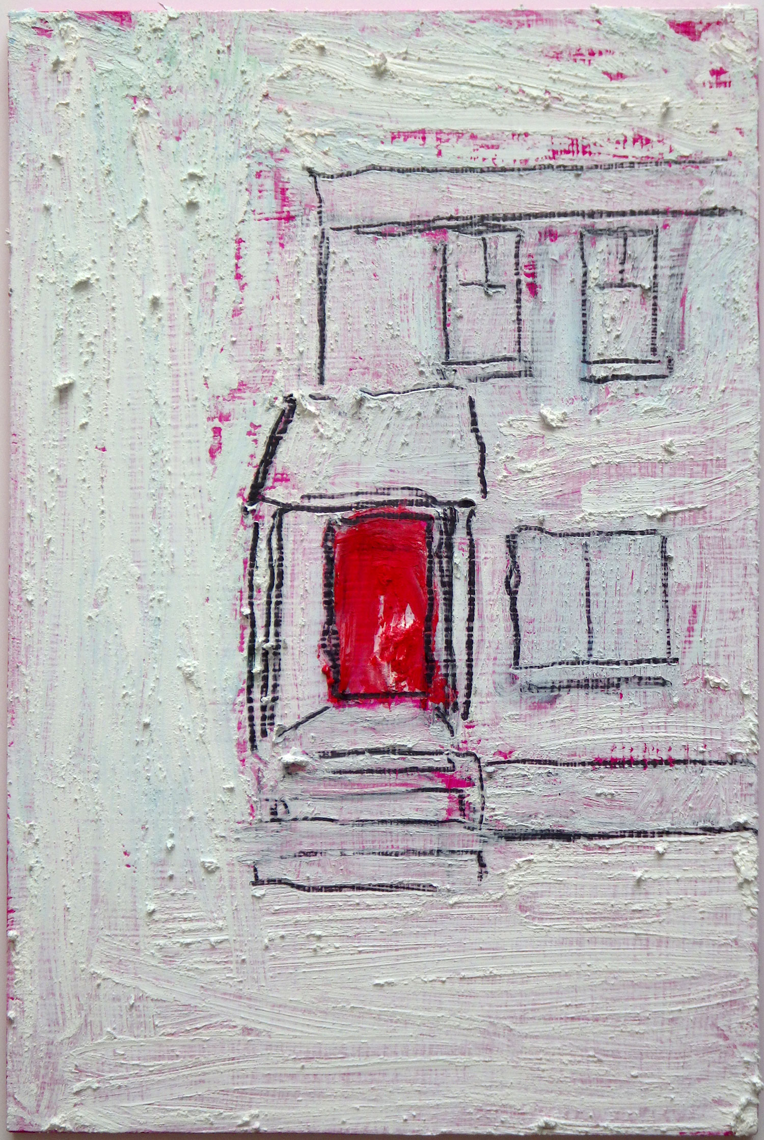 - The House with the Red Door, 2019, oilstick & graphite on wood, 23 cm x 15.5 cm