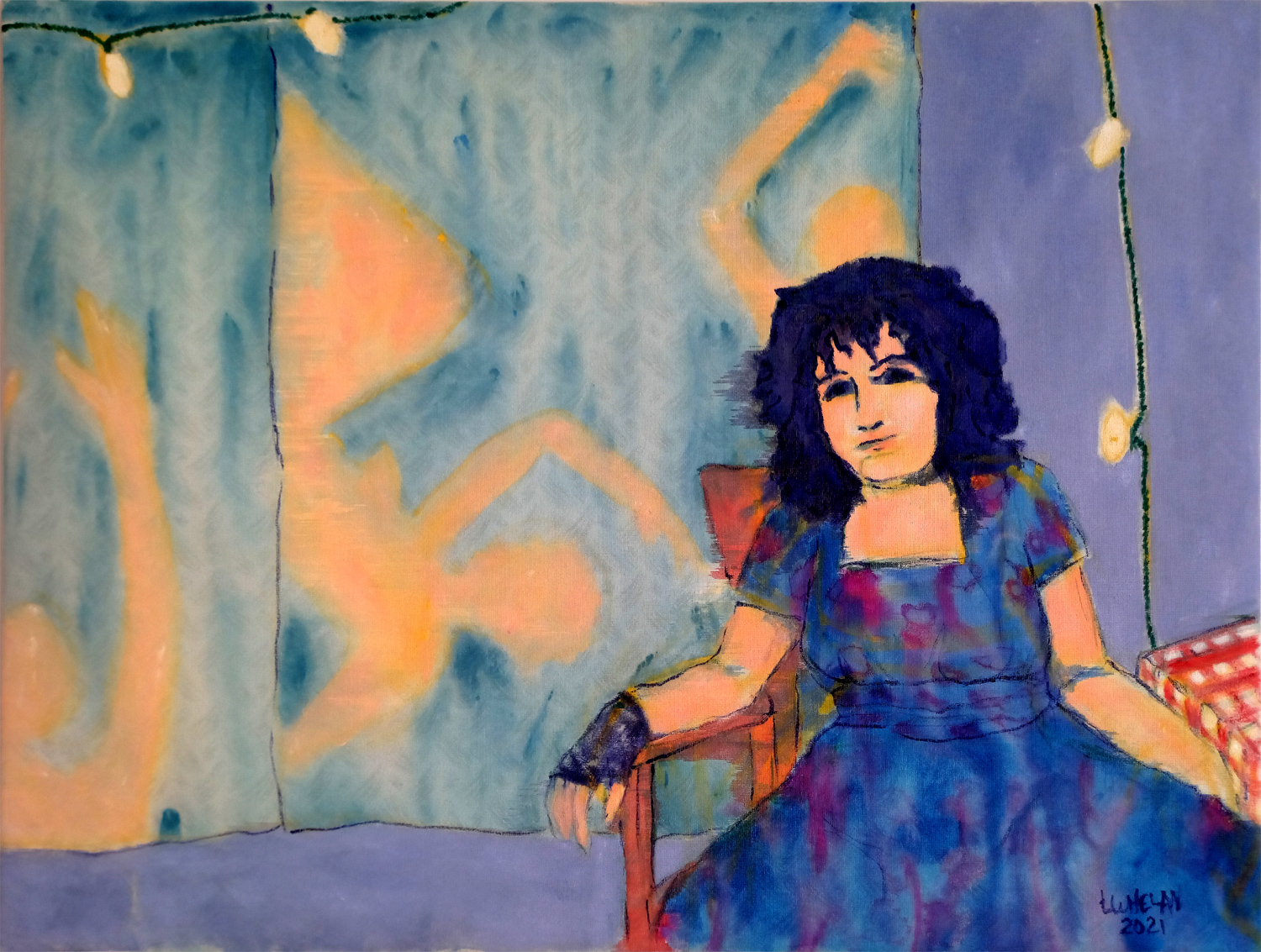 - Kingston Road: Waiting, 2021, acrylic on pressed cloth, 76 cm x 102 cm