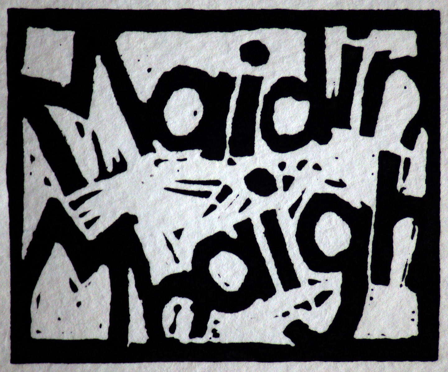 - Maidin Mhaigh, lino print, ink on Strathmore paper, image size 6 cm x 7.5 cm