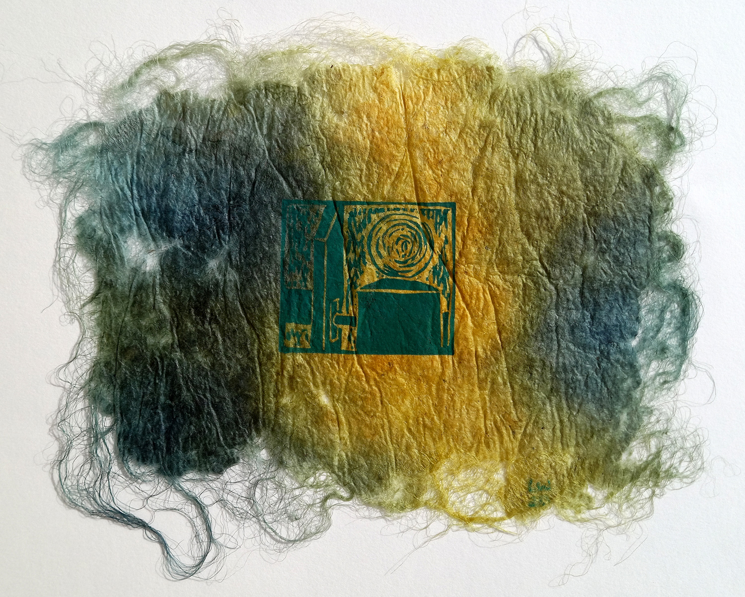 - Clothes Peg, 2020, linoprint on handmade silk fibre sheet, image size: 6.2 cm x 7.5 cm, sheet size: approx 21 cm x 27 cm